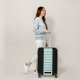The luggage itself is awesome. So much utility for a carry-on bag. Lots of zippered pouch compartments to keep everything from getting everywhere. And it has a TSA approved lock and a dust cover! Love it. The printing is terrific. Love the way it wraps around the top and bottom. So happy the bumpers, wheels and handle color matches the design perfectly. She's gorgeous.