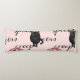 Adorably spooky body pillow featuring a pink jack-o'-lantern, black cat, and playful texts like spooky, creep, and meow set against a soft pastel pink background. This fun and quirky Halloween pattern is perfect for cat lovers, pastel goths, and fans of kawaii-style spooky vibes.