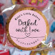 Cute Pink Kraft Baked with Love Classic Round Sticker