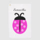 Cute Pink Ladybug Name Golf Towel