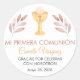 Make your first communion memorable with this Customizable Religious Chalice and Pink leaves Sticker. Featuring charming pink leaves and a symbolic chalice, this sticker allows you to personalize your message. Ideal for adding a cute and religious flair to your party favors or decorations, it's a must-have for any first communion celebration. Available in spanish.