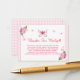 This enchanting design for your baby shower Baby's Book Request cards features "A Little Butterfly Is On The Way" theme of pink ribbon Butterflies and watercolor flowers in shades of pink and light purple on white and pink gingham border with elegant script. These adorable Book Request cards are a great way to start your Baby's library. Simply insert one along with your Baby shower invitation.You can customise it, by adding your own messages.