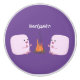 These cute pink marshmallows are warming themselves by the camp fire. Drawn in fun cartoon illustration style.
