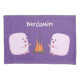These cute pink marshmallows are warming themselves by the camp fire. Drawn in fun cartoon illustration style.