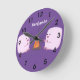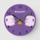 Cute pink marshmallows by camp fire cartoon round clock