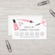 Cute loyalty card for your nail business with pink nail artist tools and little gems. Add your name too. The loyalty punch card is for the sixth visit or treatment at a discount, with a pink heart marking it. Write your name, business, and contact information on the back with black text on a white background with pink as the accent color.