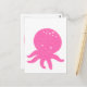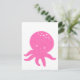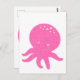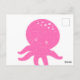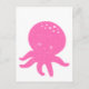 A cute pink cartoon octopus. Old print effect applied to the image. Baby animal postcards. Gift idea for kids.