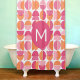 Cute Pink Orange Mid Century Modern Monogrammed Shower Curtain