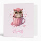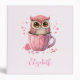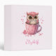 A binder with an adorable image of an owl sitting in a coffee mug.