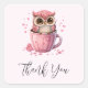 Cute Pink Owl in a Cup Thank You Square Sticker