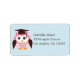 Cute children's graduation address label featuring a pink owl wearing a graduation cap against a blue background. Color can changed using the customizing tool. Graphics ©Babystar Design.