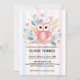 Cute Pink Owl Pastel Floral Design Baby Shower Invitation
