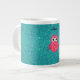 Cute pink owl turquoise glitter large coffee mug