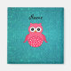 Cute pink owl turquoise glitter magnet