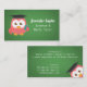 A cute pink owl wearing a graduation hat and eye glass carrying a book in front of a green chalk board like background. The owl mascot is perfect because it represents knowledge and wisdom. Reverse page include space for indicating credentials and education details. An adorable business card for female elementary and preschool teachers, tutors and anyone in the education and academics related businesses.