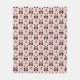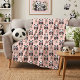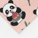This cute panda bear blanket design includes cartoon panda bears holding strawberry cakes. The panda bear are surrounded by bamboo pieces. There is a light pink background color.
