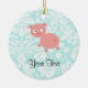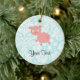 Cute Pink Pig; Teal Damask Ceramic Ornament