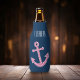 Cute Pink Polka Dot Anchor with Navy Custom Name Bottle Cooler