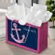 Cute Pink Polka Dot Anchor with Navy Custom Name Large Gift Bag