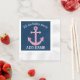 Cute Pink Polka Dot Anchor with Navy Custom Name Napkins