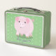 Cute pink pot bellied pig cartoon illustration metal lunch box