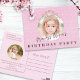 This design features a pink cute birthday girl simple, a minimalist two photo picture template, a sweet adorable polka dot design, a kids child children's birthday invite, a whimsical fun celebration celebrate, a girly girl feminine princess tiara, a little princess birthday party cute, a princess birthday party invitations, a stylish trendy calligraphy script, with creative typography style text