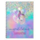 Make back to school fun with this Cute personalised Notebook. It is designed with elegant girly iridescent glitter drips in unicorn rainbow pink colors.
