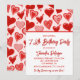 Cute Pink Red Hearts Pattern 74th birthday Invitation