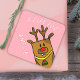 Cute Pink Reindeer Kid`s Name Christmas Gift Square Sticker