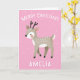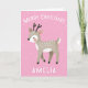 Cute Pink Reindeer Kid`s Name Merry Christmas Card