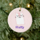 An ornament with an illustration of a cute sleeping kitty cat. Eyes closed looking happy and peaceful. Set on a pale pink background.