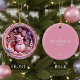 Bring a touch of pastel magic to your tree with this whimsical pink snowman family Christmas ornament. Designed in soft shades of blush, rose, and icy pink, this enchanting ornament features a cheerful snowman surrounded by dreamy winter trees and candy-like swirls — creating a playful, storybook holiday scene. The reverse side offers elegant personalization for your family name and year, making it a heartfelt keepsake or thoughtful holiday gift. Its glossy ceramic finish and delicate pink tones bring a warm, joyful touch to any Christmas tree, perfect for those who love modern yet cozy festive décor.
