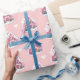 Cute Pink Snowy Gingerbread House and Hearts Wrapping Paper