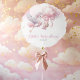 Add a dreamy touch to your baby girl celebration with this pink stork baby shower balloon. Featuring pastel clouds, a soft watercolor background, and a delicate stork illustration carrying a tiny bundle, it’s the perfect floating accent to match your whimsical theme. Whether used as part of a balloon bouquet or a photo backdrop, this balloon adds playful charm and elegance to your shower decor.
