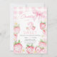 Cute Pink Strawberries Berry 2nd Second Birthday Invitation