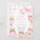 Cute Pink Strawberries Berry Sweet 5th Birthday Invitation