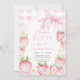 Cute Pink Strawberries Berry Sweet 7th Birthday Invitation