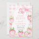 Cute Pink Strawberries Berry Sweet 9th Birthday Invitation