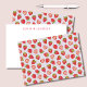 Personalized 5 x 7 note cards with strawberry design on pale pink background. Personalise your notecard with your own name or alternative text.