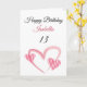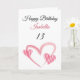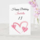 Cute Pink Striped Painted Heart 13th Birthday Card