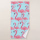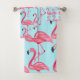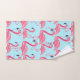 Cute Pink Summer Painted Flamingo Pattern Blue Bath Towel Set