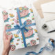 Cute Pink Swan and Blue Bear Wrapping Paper