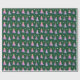Green Christmas wrapping paper, adorned with a repeating pattern of minimalist pink trees and delicate stars.