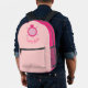 This awesome backpack features a cute pink turtle with big black eyes and a pretty two-tone pink shell. She has little pink feet and a cute tail. There is text underneath the turtle that says turtle babe. This would make a fun gift for a female of any age.