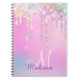 Make back to school fun with this Cute personalised Notebook. It is designed with elegant girly iridescent glitter drips in unicorn rainbow pink.