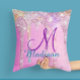 Cute Pink Unicorn Rainbow Glitter Drips monogram Throw Pillow