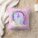 Cute Pink Unicorn with Sparkly Rainbow Throw Pillow