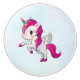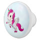 A ceramic door knob with a white winged unicorn with pink mane, tail and hooves.
