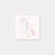 Sticky notes with a white winged unicorn with pink mane, tail and hooves.