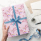 Cute Pink Unicorns & Hearts Doodles Pattern Wrapping Paper